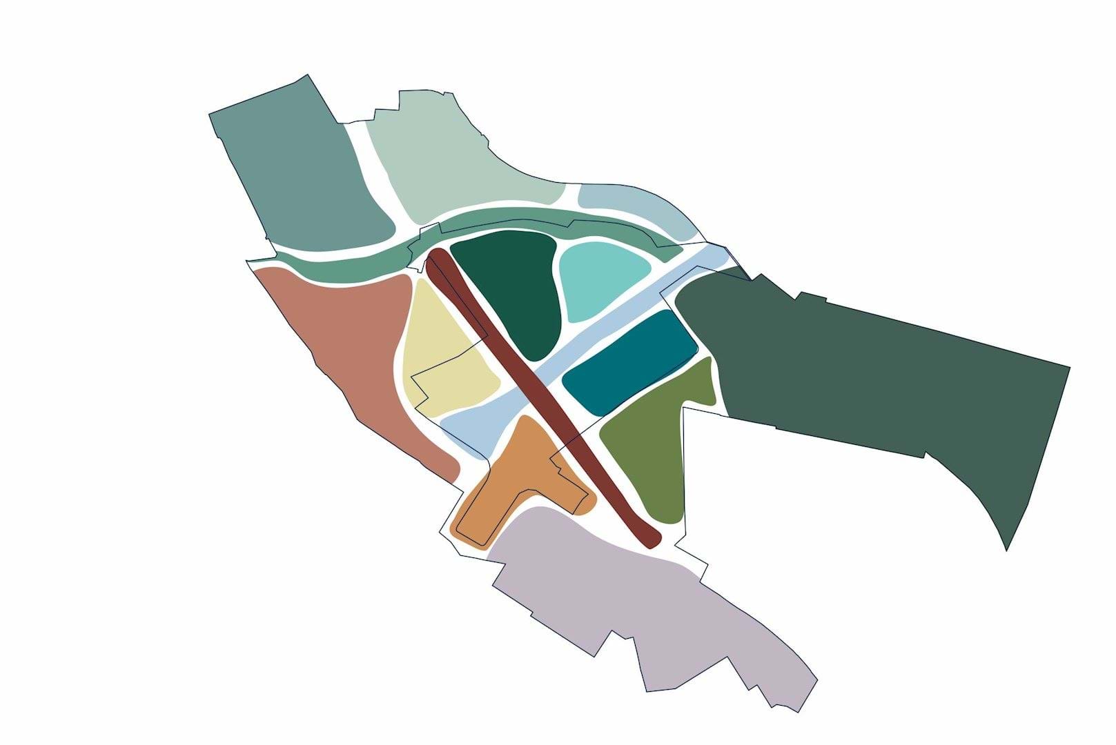 Bag de to akser ligger fire centrale kvarterer, som i deres karakter og skala adskiller sig fra de store handelsgader. De centrale kvarterer er forskellige i deres sammensætning, kantzoner, anvendelser og skala.